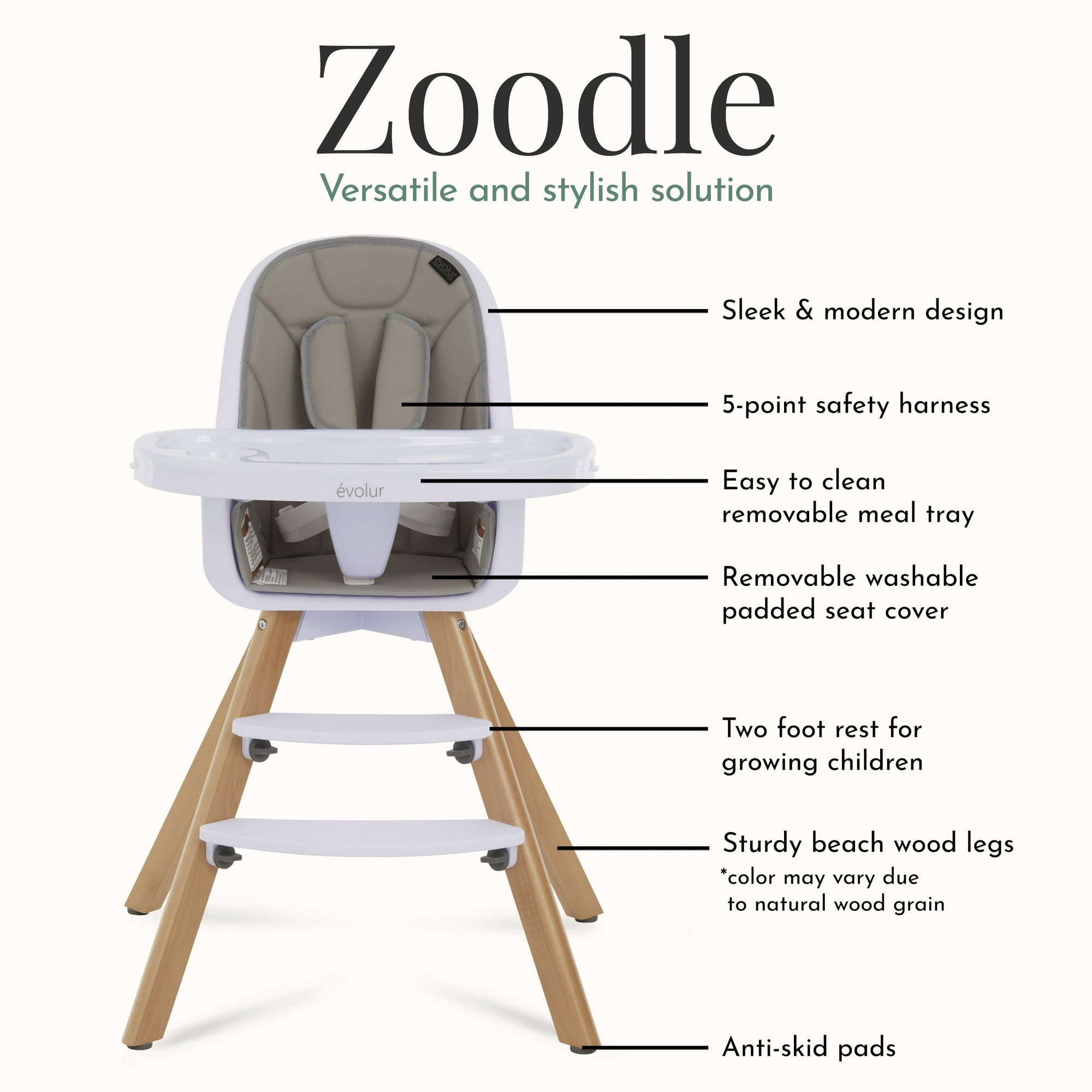 Evolur Zoodle 2-in-1 High Chair Booster Feeding Chair with Modern Design, Light Grey (Model #254)