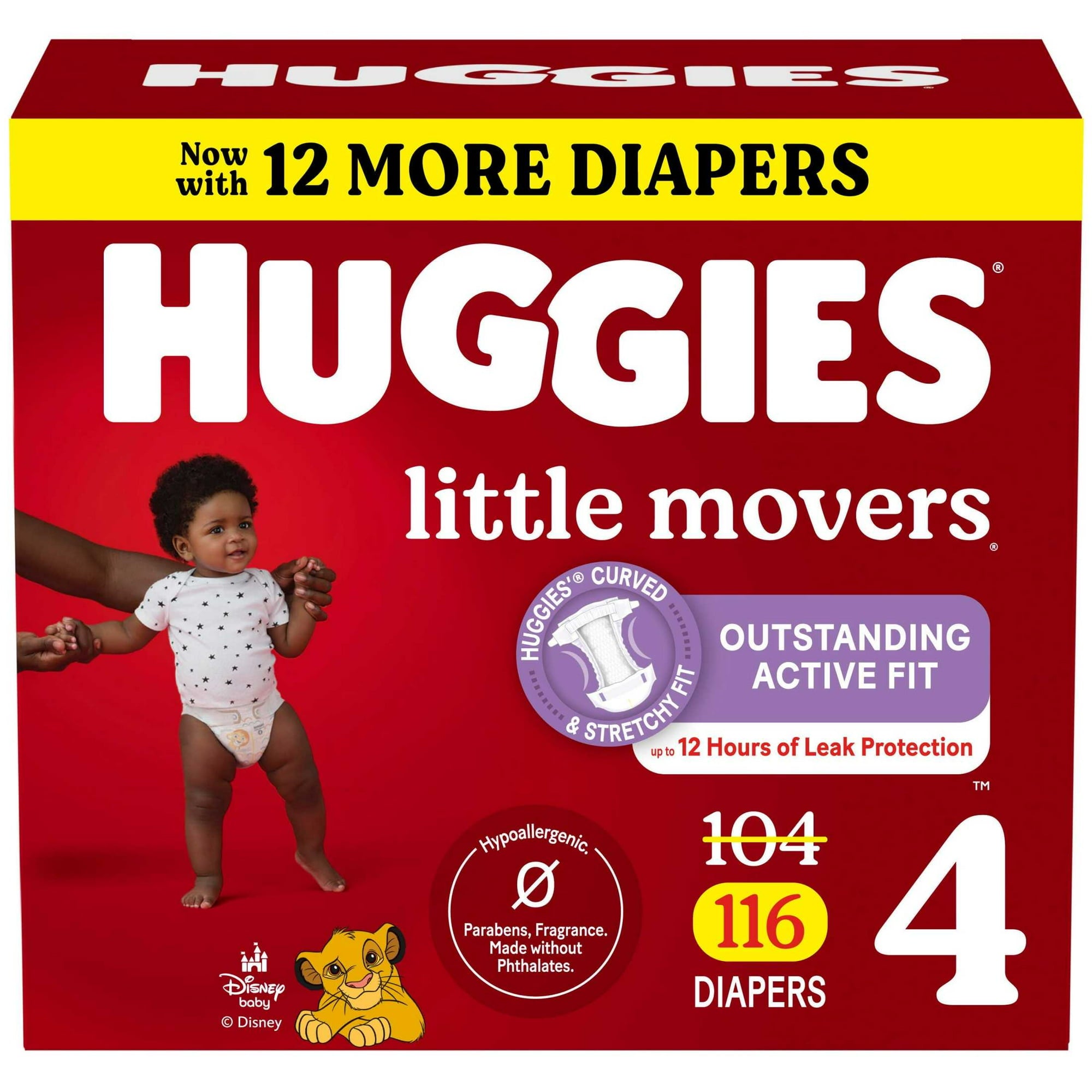 Huggies Little Movers Baby Diapers, Size 4 (22-37 lbs), 116 Count (Select for More)