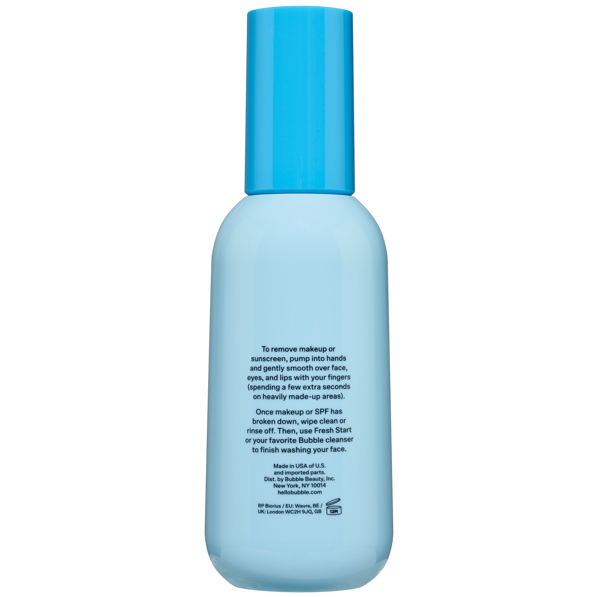 Bubble Magic Melt Micellar Milk is a milky cleanser-meets-makeup-remover that breaks down makeup, product, and oil easily and without water. To remove makeup or sunscreen, pump into hands and gently smooth over face, eyes, and lips with your fingers (spending a few extra seconds on heavily made-up areas). Once makeup or SPF has broken down, wipe clean or rinse off. Then, use Fresh Start or your favorite Bubble cleanser to finish washing your face. To remove makeup or sunscreen, pump into hands and gently smooth over face, eyes, and lips with your fingers (spending a few extra seconds on heavily made-up areas). Once makeup or SPF has broken down, wipe clean or rinse off. Then, use Fresh Start or your favorite Bubble cleanser to finish washing your face. Use daily or twice a day.