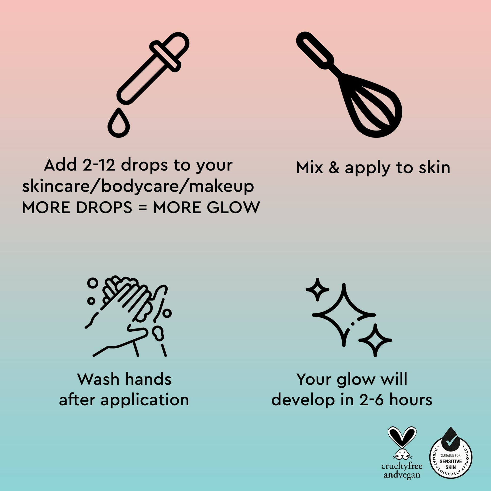 The Tanologist Self Tan Drops are designed to be mixed with your skincare, makeup, or body care. These face and body liquid drops are easy to apply and are 100% customizable. This flexible formulation is perfect for both newbies and experienced tanners. There are so many ways to glow from just one bottle. The more tan drops you add, the darker your tan. Getting that vacay bronze has never been easier! Cruelty-free and vegan.