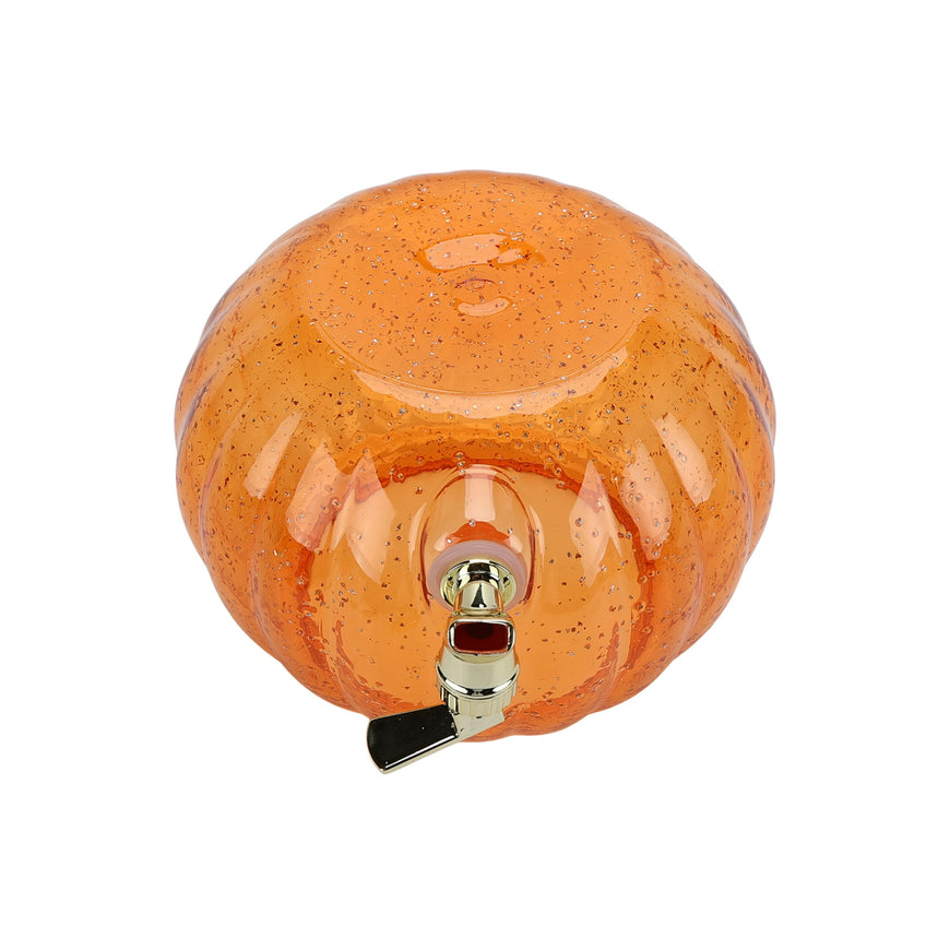 Elevate your Halloween celebrations with this Way to Celebrate 1.5-gallon Acrylic Pumpkin Dispenser with glitter, a delightful blend of festive charm and seasonal design . This pumpkin dispenser is available in clear or orange, with flecks of glitter and a metallic plated spigot to perfectly complements your Halloween dŽcor. This Pumpkin Dispenser comes in generous 1.5 gallon capacity that is perfect for any seasonal beverage. This dispenser is sturdy and durable with a 9.625 inch diameter and 10.25 inches height. Crafted from high-quality, BPA-free acrylic, this dispenser ensures your food stays safe and free from harmful chemicals. Designed with convenience in mind, it is top rack dishwasher safe, making post-party clean-up a breeze. Bring home this pumpkin beverage dispenser today and make your Halloween festivities extra special!