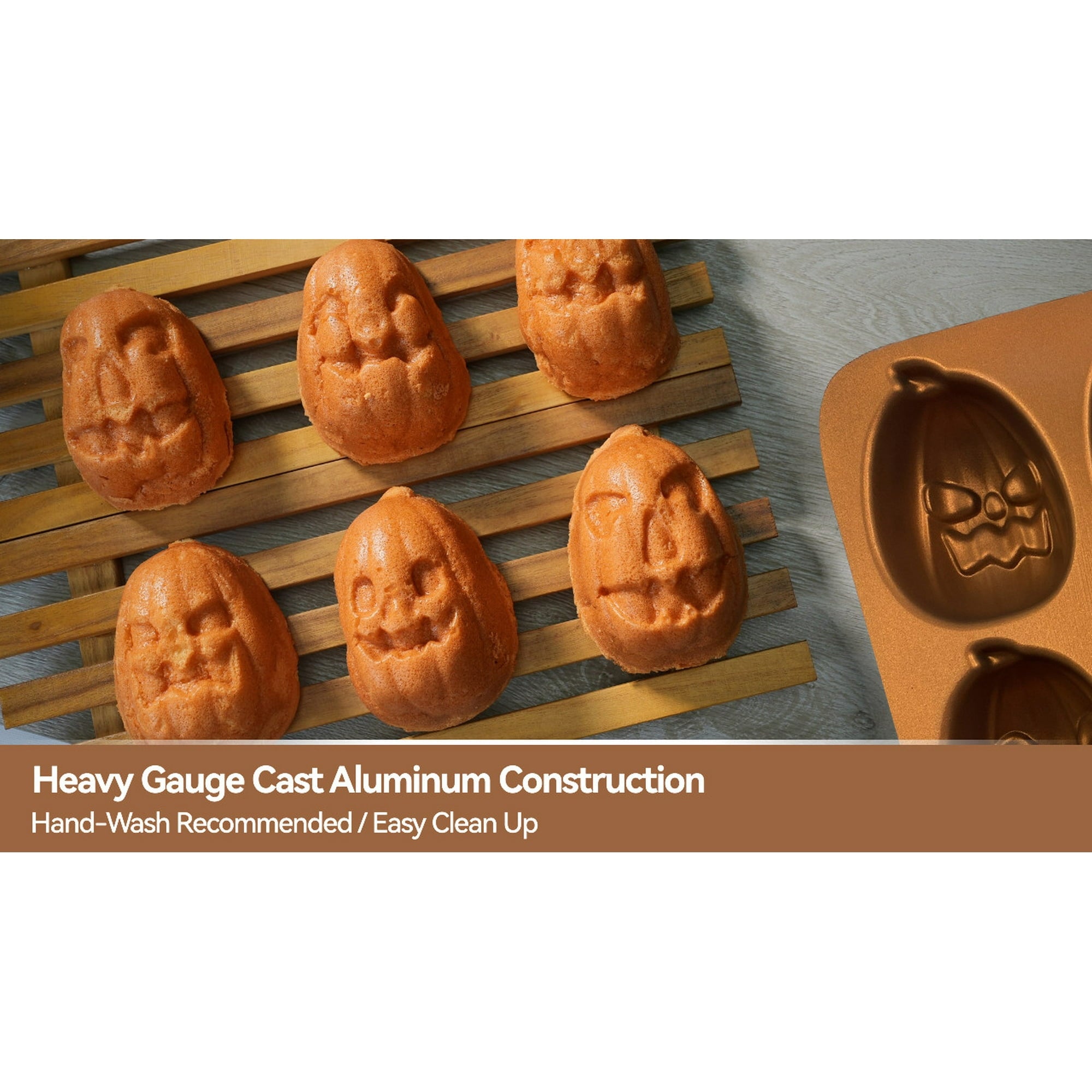 The cast aluminum's superior heat conductivity ensures controlled, even browning of cakes and treats.