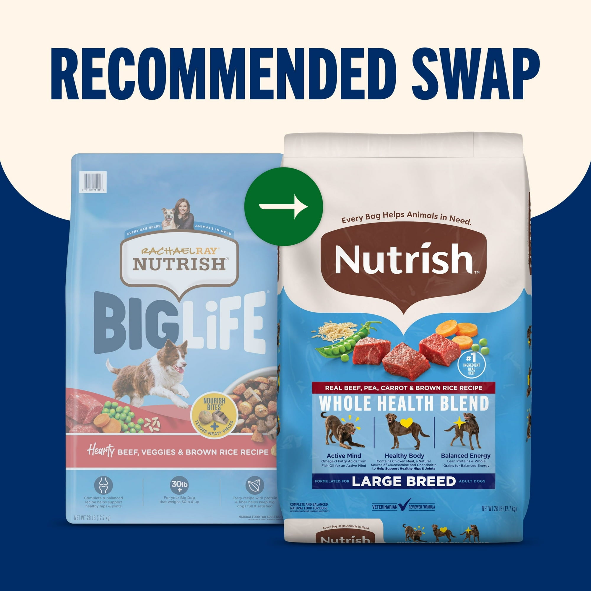 Nutrish Large Breed Recipes have many of the same benefits as Rachael Ray Nutrish Big Life with the added benefits of Whole Health Blend