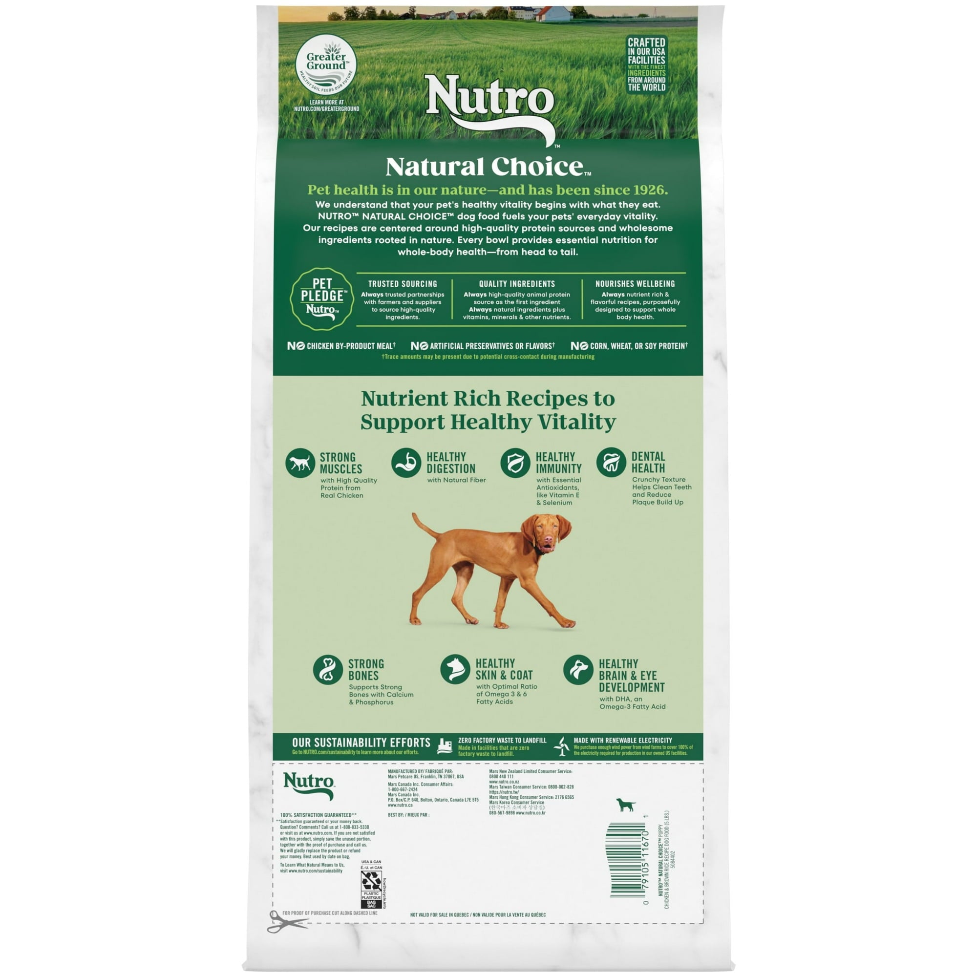 We understand that pet owners want the best for their dogs. That’s why Nutro has a partnership with trusted farmers and suppliers to source high-quality ingredients, giving your dog quality nutrition both you and your pet will appreciate. Made with chicken as the #1 ingredient, and crafted with vitamins, minerals, and other nutrients, Nutro Natural Choice Puppy Dry Dog Food, Chicken and Brown Rice Recipe brings real, recognizable ingredients to every mealtime. Crafted with DHA, an Omega-3 Fatty Acid, this puppy dry dog food supports healthy brain and eye development in puppies. Plus, it's made with non-GMO ingredients and has no chicken by-product meal, corn, wheat, or soy. With ingredients that promote healthy skin and coat, digestion, and immunity, this puppy dry dog food recipe also supports your puppy’s vitality. Packed with delicious flavor, high quality ingredients, and supportive benefits, serve your furry loved one something they will love with Nutro Natural Choice Dry Dog Food Recipes.