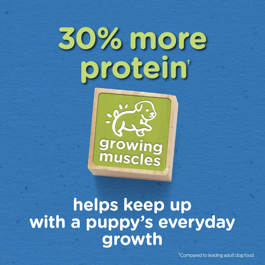 Puppy dry dog food packed with high-quality protein, like real beef, for growing muscles
