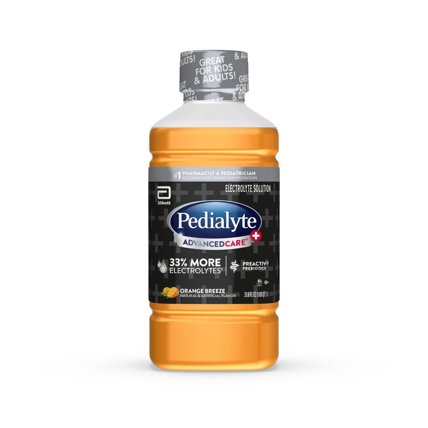 Pedialyte AdvancedCare Plus Electrolyte Solution has 33% more electrolytes and is an advanced way to rehydrate quickly. This electrolyte drink is formulated to replenish more of the electrolytes you may lose due to vomiting, diarrhea, or extreme sweating caused by prolonged exercise or excessive heat. Pedialyte AdvancedCare Plus also has PreActiv Prebiotics to help promote digestive health. * Pedialyte AdvancedCare Plus has 1380mg sodium and no more than 25g sugars per liter; leading sports drink has ~460mg sodium and ~58g sugars per liter. 60 mEq sodium electrolytes per liter vs 45 mEq in original Pedialyte.