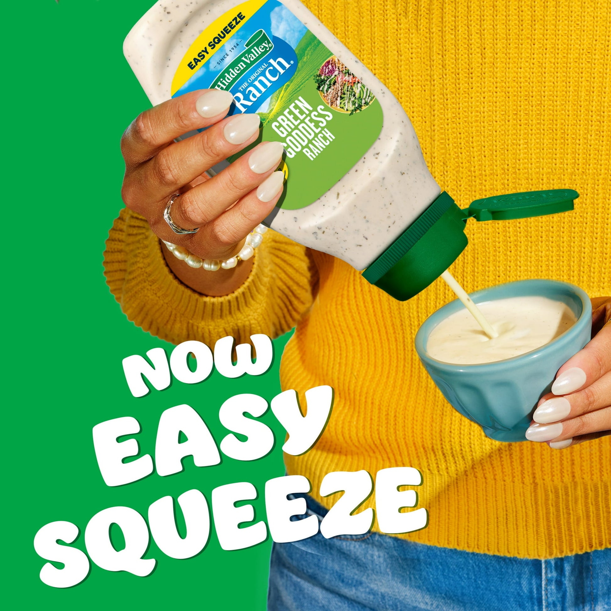 DELICIOUS FLAVOR: One 16-oz. Easy Squeeze bottle of Hidden Valley Green Goddess Ranch Dressing for scrumptious flavor to delight your taste buds with every bite
