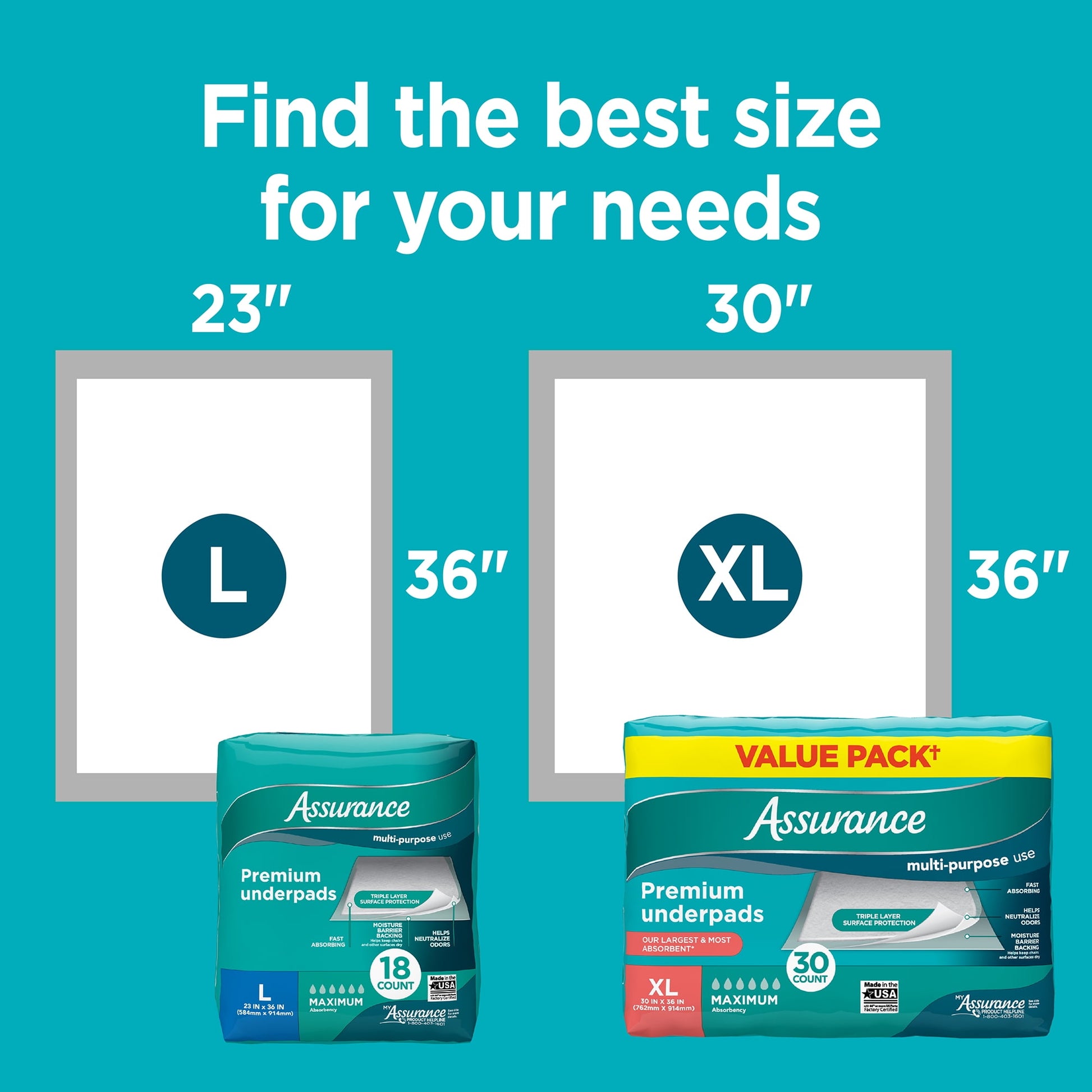 Assurance Unisex Premium Quilted Underpad, Maximum Absorbency, XL, 30 Count