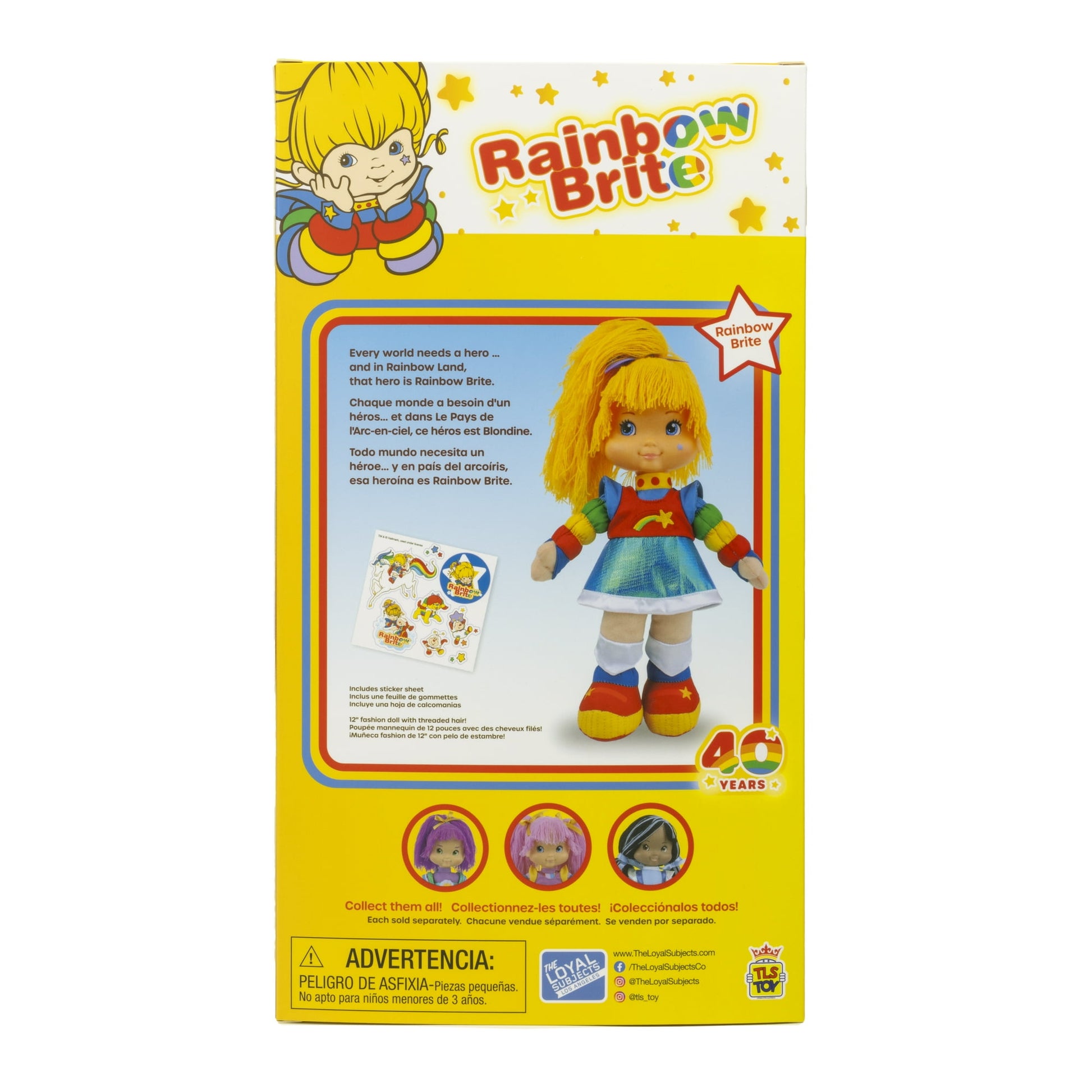 Rainbow Brite is a beloved character known for her cute, colorful style and magical adventures in Rainbow Land. With her magical color belt and cheerful friends, Rainbow Brite has won the hearts of kids for generations. The Loyal Subjects has created a new product line inspired by the classic Rainbow Brite perfect for fans of all ages. The new classic collection features a 12Ó Rainbow Brite doll with iconic yarn hair, high-quality fabrics, a soft plush body, and familiar fashion choices. This doll encourages Rainbow BriteÕs values of kindness, courage, and optimism. Plus, the doll comes with extra accessories for even more fun!